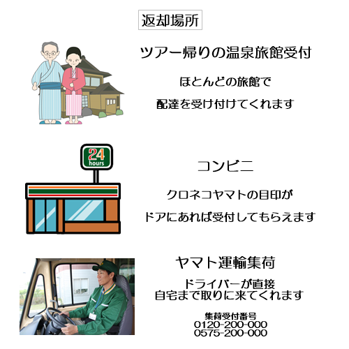 ツアー参加なら帰りの温泉旅館でも返却できる!